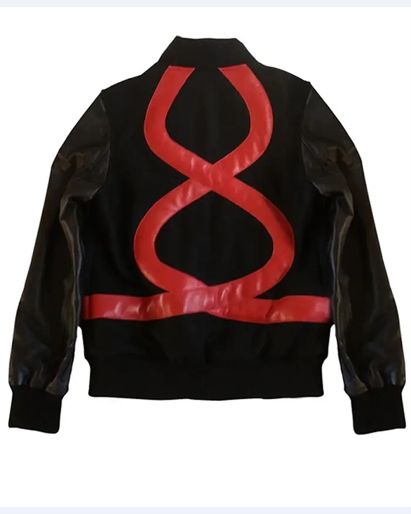 Red Heart Chris Brown Black Wool and PU Leather Bomber Jacket On Sale