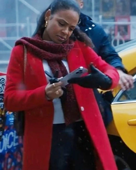 Layla Movie Meet Me Next Christmas 2024 Christina Milian Red Wool Coat