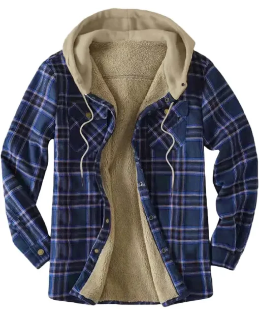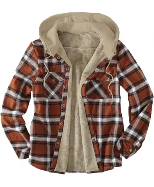 A festive check jacket exudes a happy holiday vibe! For chilly excursions, the hood provides comfortable coverage. Ideal for joyful seasonal excursions.