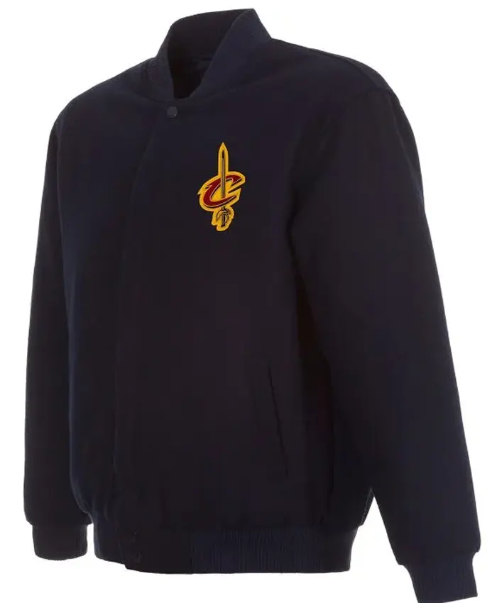 Shop Cleveland Cavaliers Full-Snap Navy Blue Wool Bomber Jacket For Sale