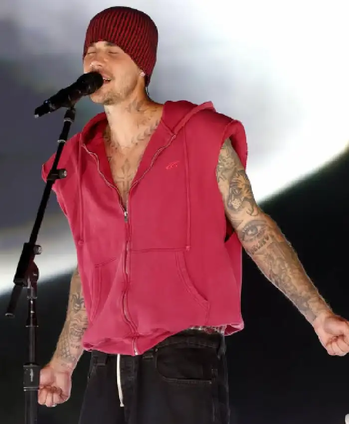 Be the first to review “Coachella 2026 Justin Bieber Red Sleeveless Hoodie” Cancel reply