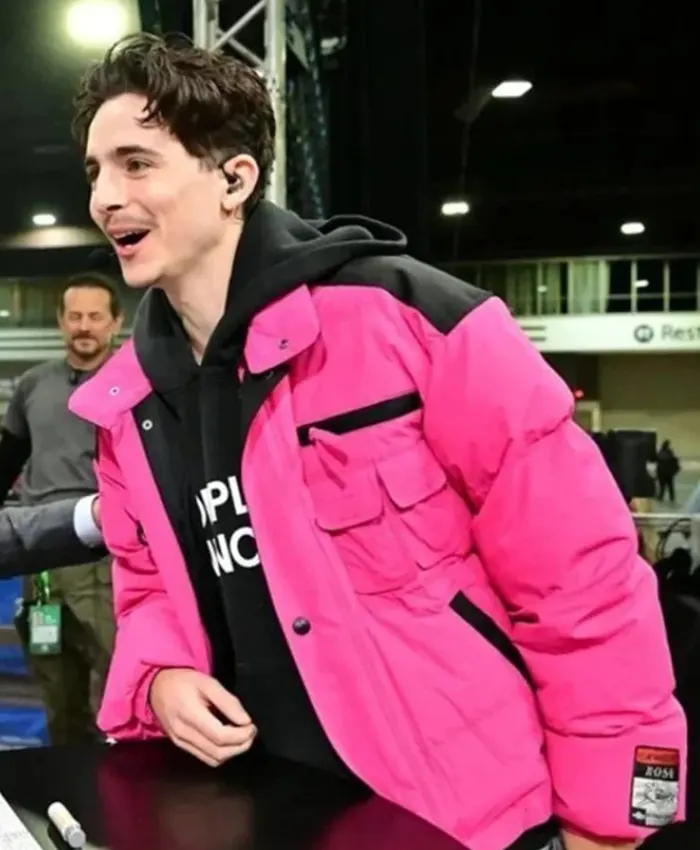 Show Off Your Trendy Side with the College Gameday Timothée Chalamet Pink Puffer Jacket