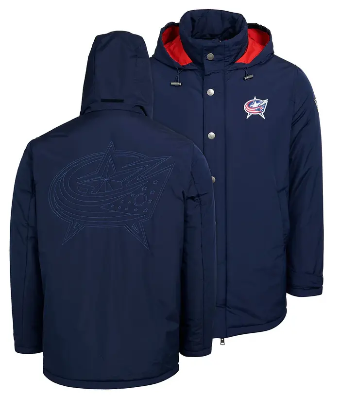Columbus Blue Jackets Coach Navy Blue Hooded Jacket For Men and Women
