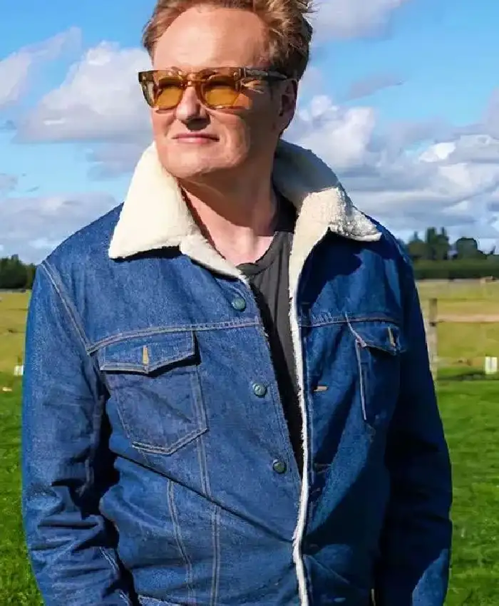 Conan O’Brien Must Go S02 2025 Blue Sherpa Denim Jacket For Men