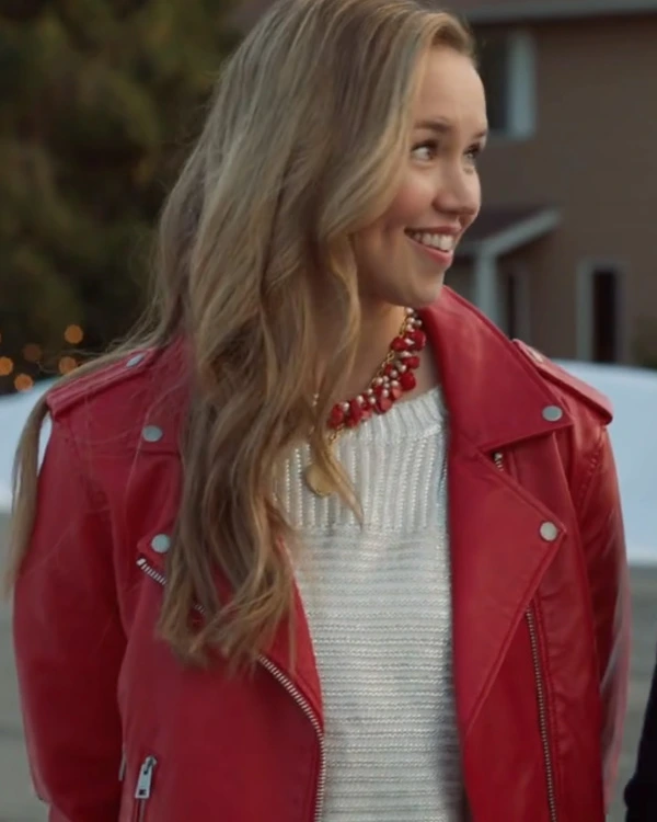 Lily Movie Confessions of a Christmas Letter Lillian Doucet-Roche Red Real Leather Biker Jacket