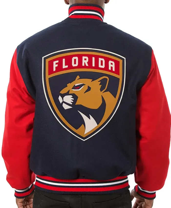 Cummings Florida Panthers Two-Tone Navy and Red Wool Varsity Jacket