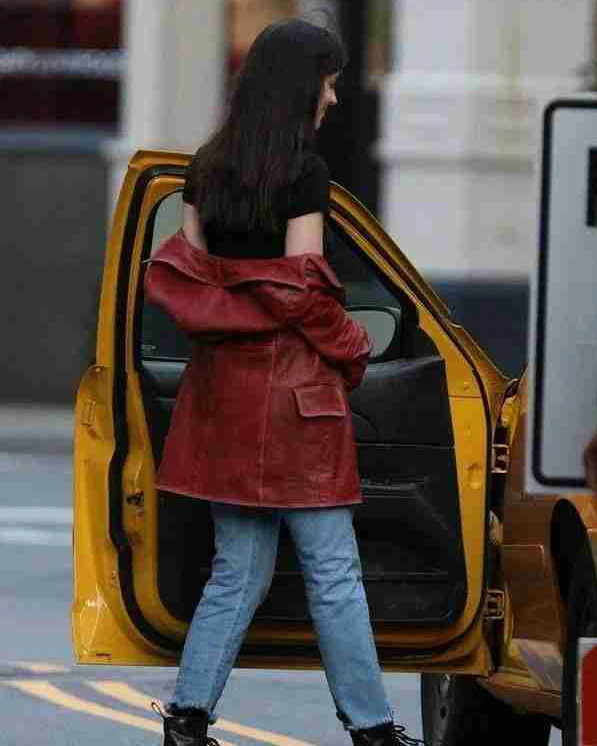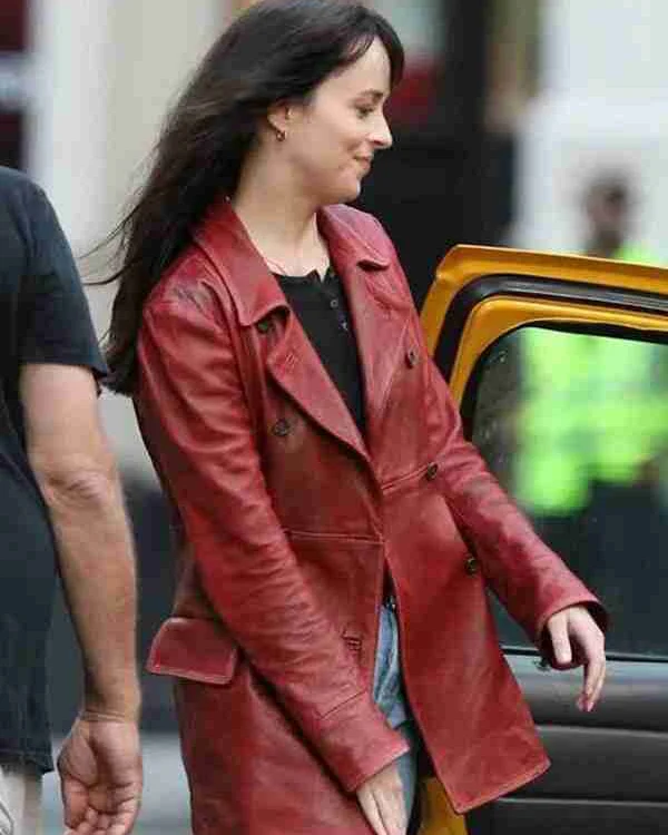 Dakota Johnson Movie Madame Web 2024 Madame Web Maroon Leather Jacket For Sale