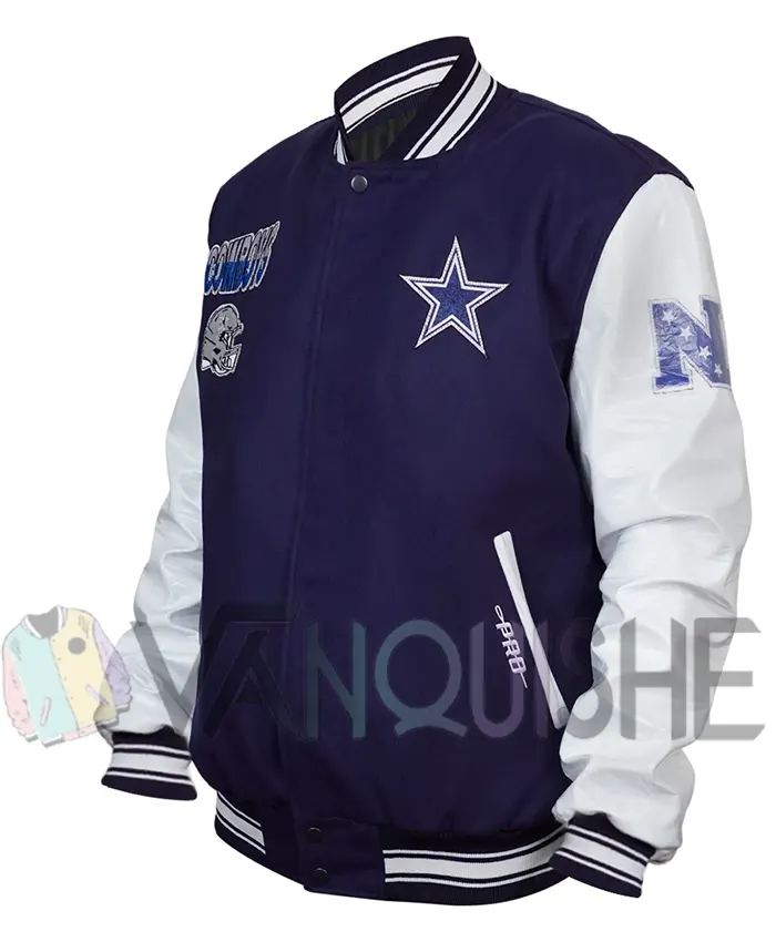 Dallas Cowboys Sport 2025 Turn It Up Classic Rib Varsity Jacket Navy White For Mens and Womens