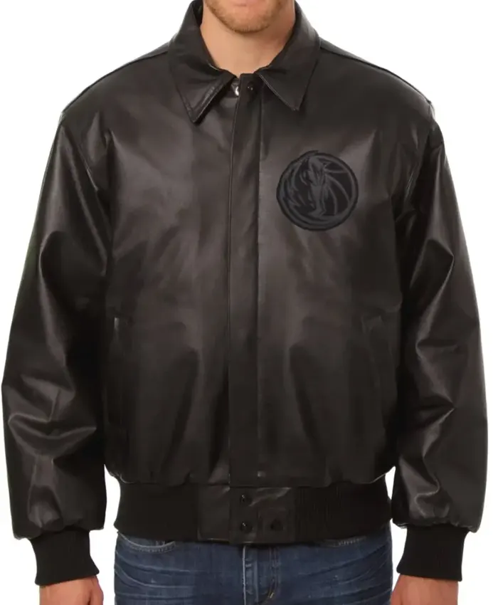 Dallas Mavericks Black Zipper Over Button Leather Bomber Jacket For Sale