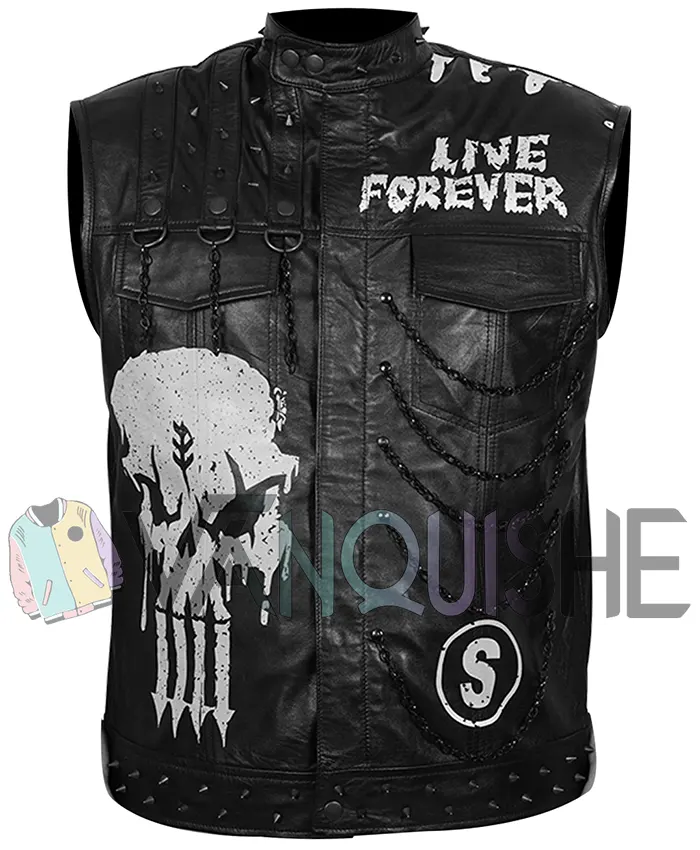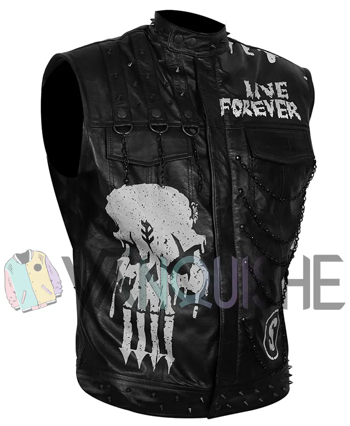In terms of style, Priest often dons a striking black vest that complements his persona. The vest features material: genuine leather, offering durability and a sleek appearance. Inside, it boasts an inner: viscose lining for comfort during intense matches. The design includes pockets: two sides and two inner, providing functionality without sacrificing style. An erect collar enhances its bold look, while the closure: zipper and buttoned closure ensures a secure fit. The overall color: black signifies strength and sophistication, perfectly matching Priest’s commanding presence in the ring. This combination of style and practicality reflects Priest’s approach to wrestling—serious yet stylish, always ready for the next challenge. This men’s Leather Vest is perfect for any occasion.