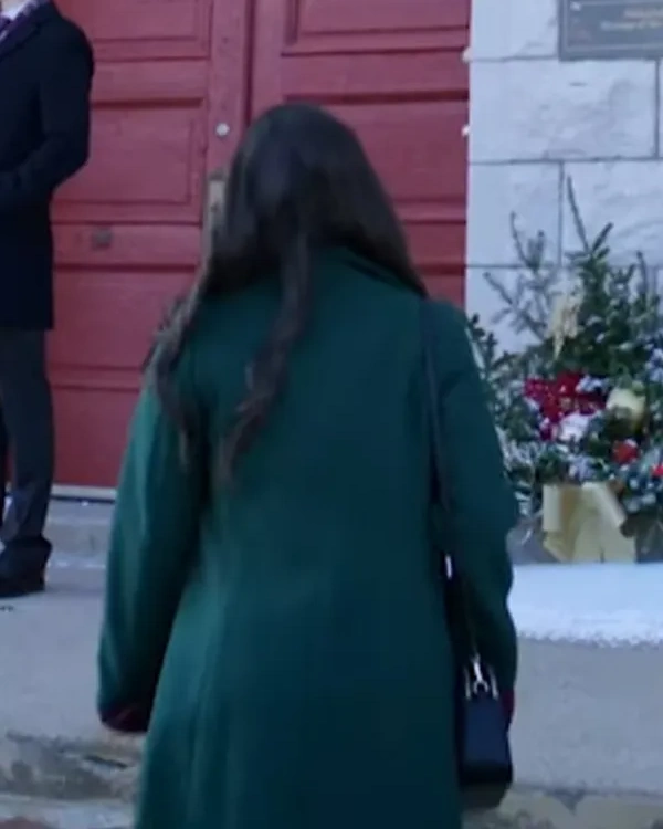 Chelsea Jones Movie A Cinderella Christmas Ball 2024 Danica McKellar Green Wool Long Coat