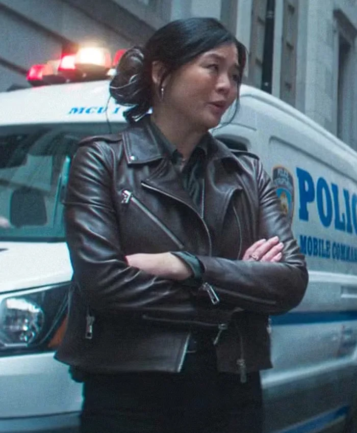 Ruibo Qian TV-Series Daredevil Born Again 2025 Detective Angie Kim Brown Leather Biker Jacket