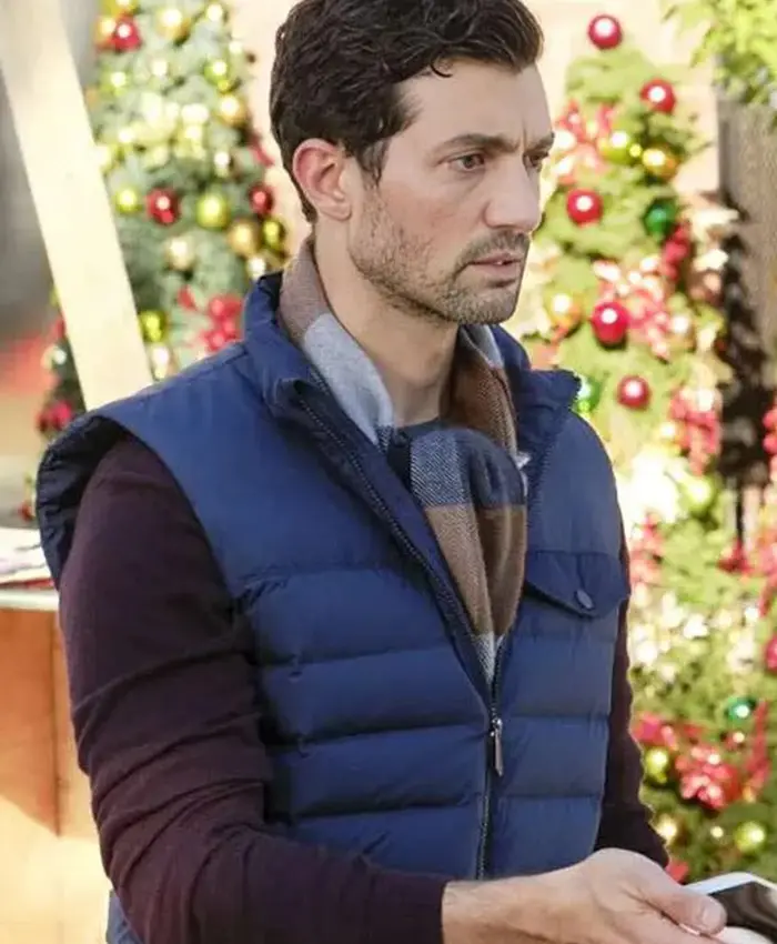 Bring Holiday Warmth in David Alpay’s Blue Christmas Ring Puffer Vest