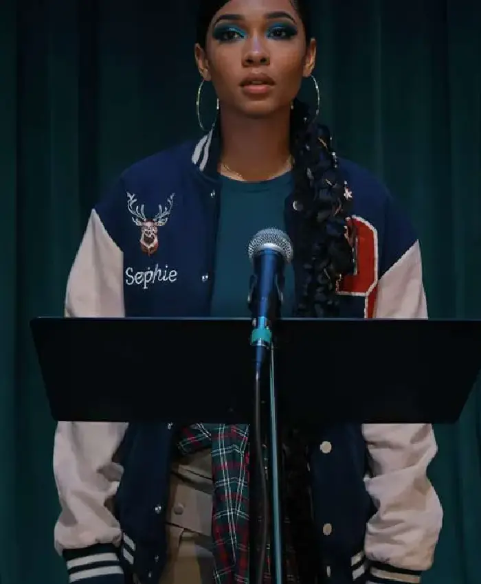 Kyla Brown Dead Deer High 2026 Stephanie Blue and White Varsity Jacket On Sale For Men and Women