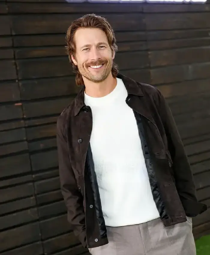 Buy Glen Powell 2026 Deadline Contenders Television Brown Suede Jacket For Men and Women