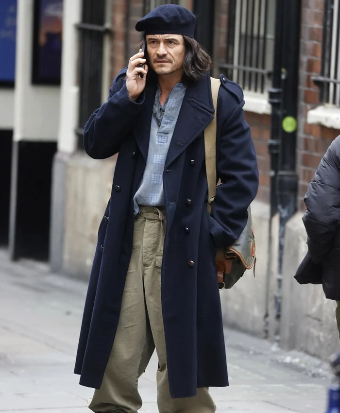 Orlando Bloom Movie Deep Cover 2025 Blue Wool Coat