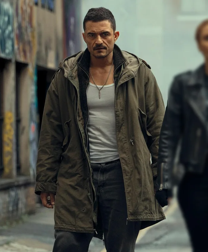 Orlando Bloom Movie Deep Cover 2025 Green Cotton Hooded Coat