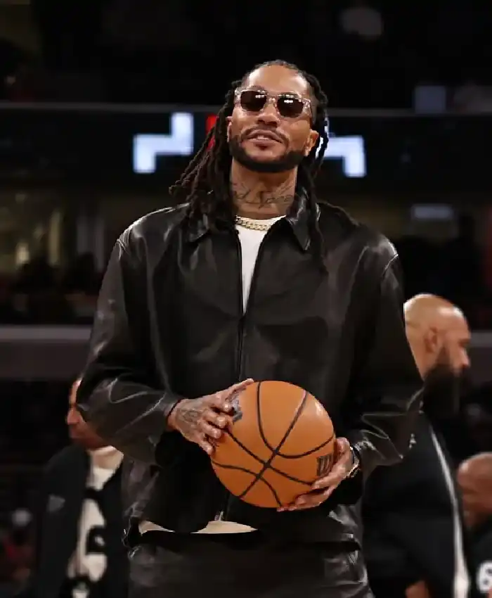 Jersey Retirement Ceremony 2026 Derrick Rose Black Leather Jacket For Men