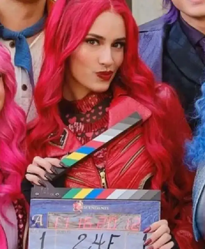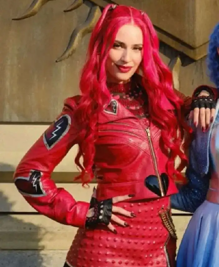 Kylie Cantrall Descendants Wicked Wonderland 2026 Princess Red Cropped Leather Jacket For Women