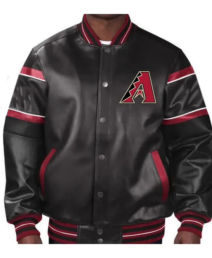 Be the first to review “Diamondbacks Black And Red Full-Snap Leather Bomber Jacket” Cancel reply