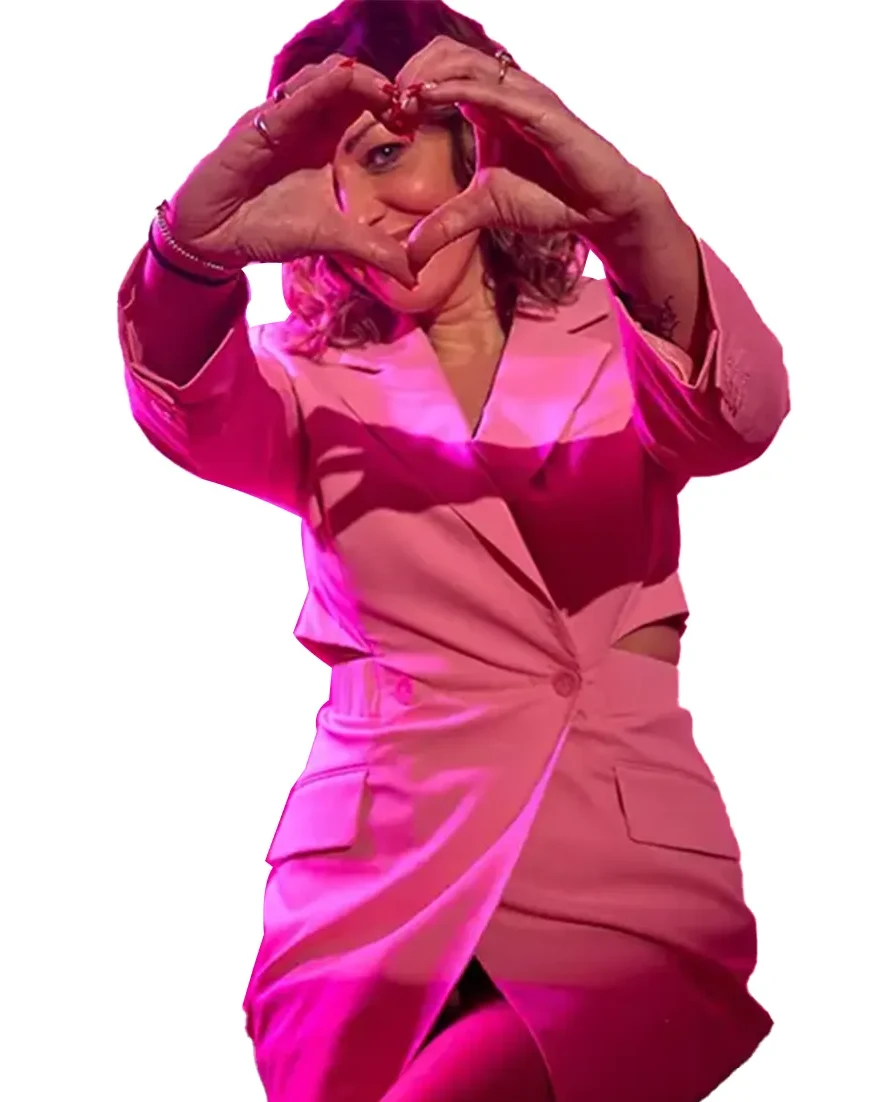 Director Molly McGlynn Fitting In 2024 Movie Premier Pink Double Breasted Blazer Coat
