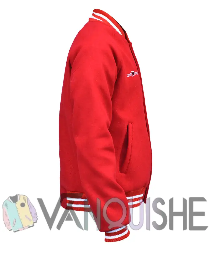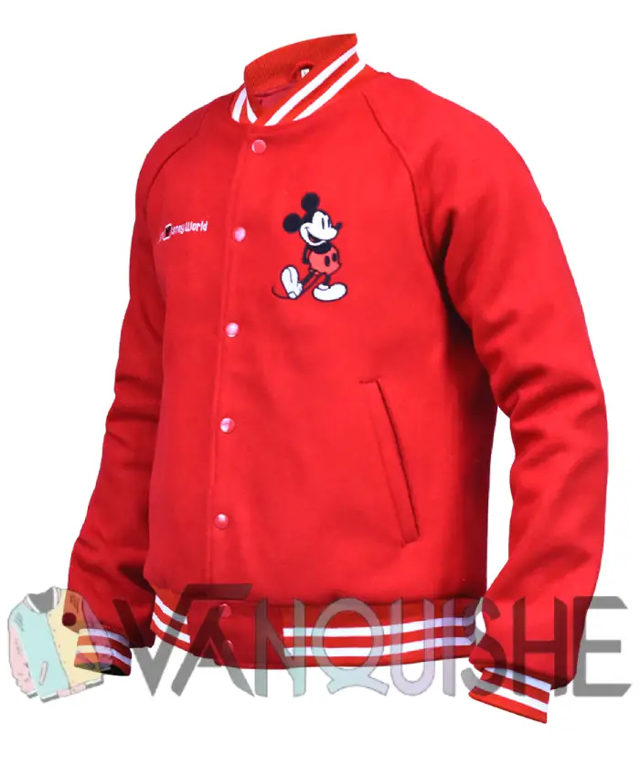 Disney World Mickey Mouse Red Cotton Varsity Bomber Jacket On Sale For Men and Women