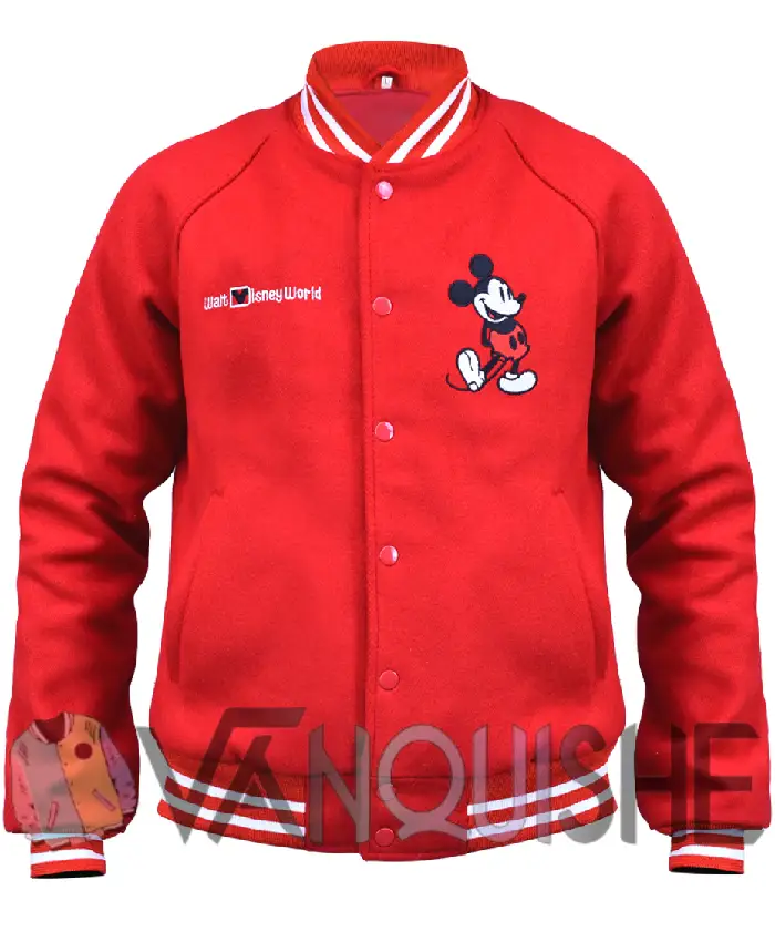 Mickey Mouse, man, everyone knows him, right? You see him plus instantly think of Disney, cartoons, fun, happy times. He’s been around forever but somehow never gets old. Kids love him, adults remember him from when they were little, and honestly, he’s just one of those characters that feels classic. That’s exactly what the Disney World Mickey Mouse Red Varsity Jacket feels like. It’s playful, bright, and just fun to wear. Makes you feel a little light, like stepping into a cartoon world for a second.