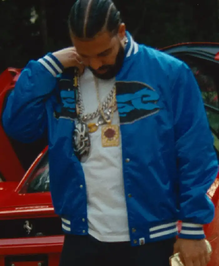 Drake Jumbotron Shit Poppin Blue Satin Varsity Jacket For Men and Women