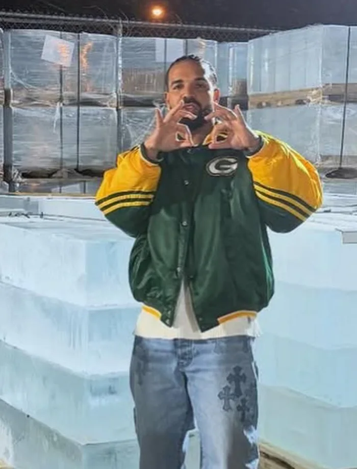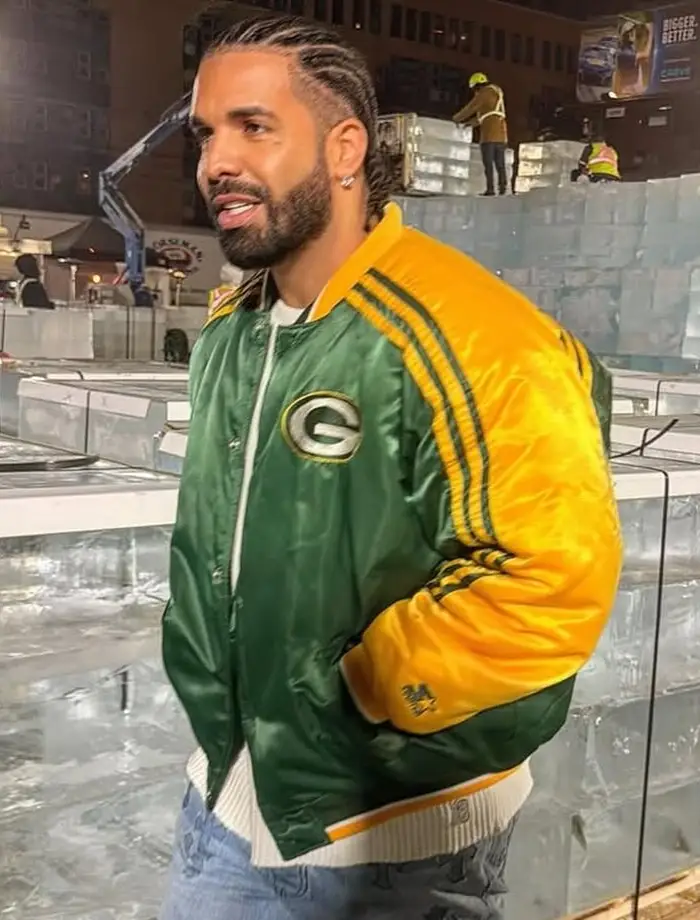 Drake loves the Green Bay Packers. He wore this vintage jacket and fans went crazy. The Drake Vintage Packers Jacket brings that classic football style straight to your closet. Yellow and green satin fabric shines beautifully under any light. The ribbed collar, cuffs, and hemline give you that true vintage sportswear look. You snap this jacket up and suddenly you feel like you are in the frozen tundra of Lambeau Field. That is the Drake way. Packers fans will definitely recognize this iconic piece.