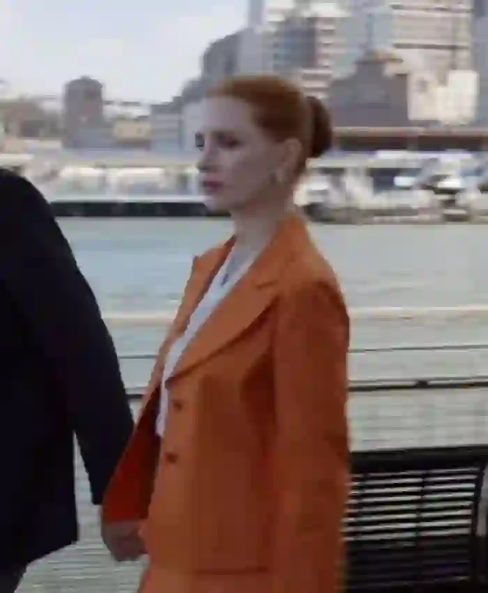 Jessica Chastain Dreams 2026 Jennifer McCarthy Peach Wool Blazer For Women