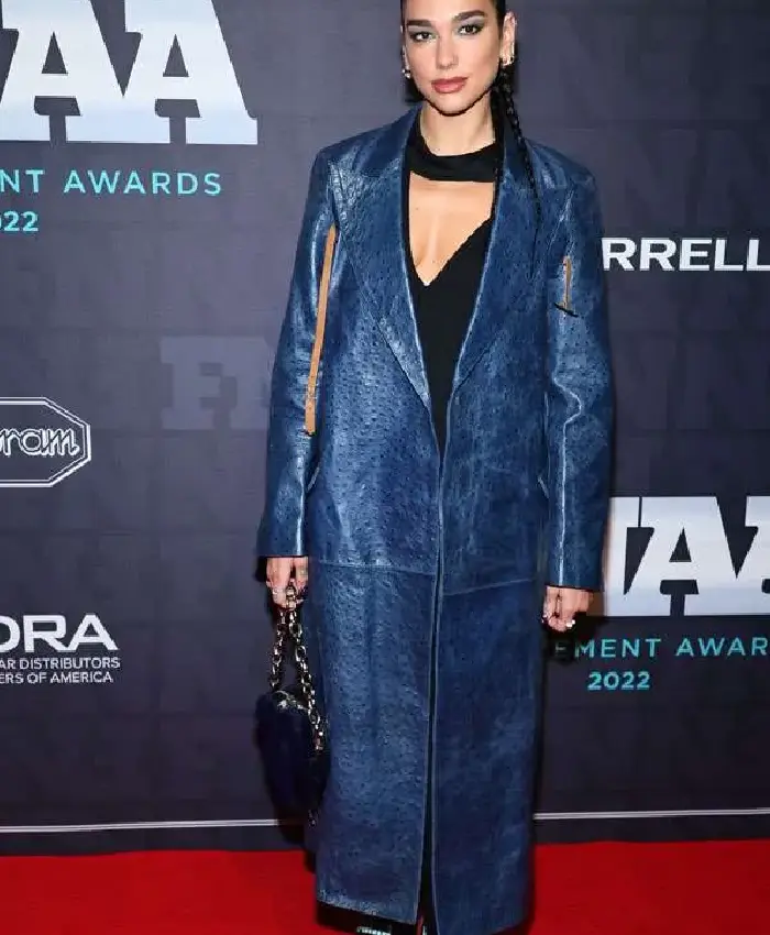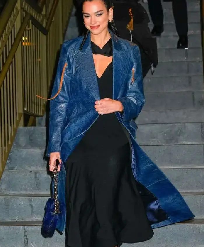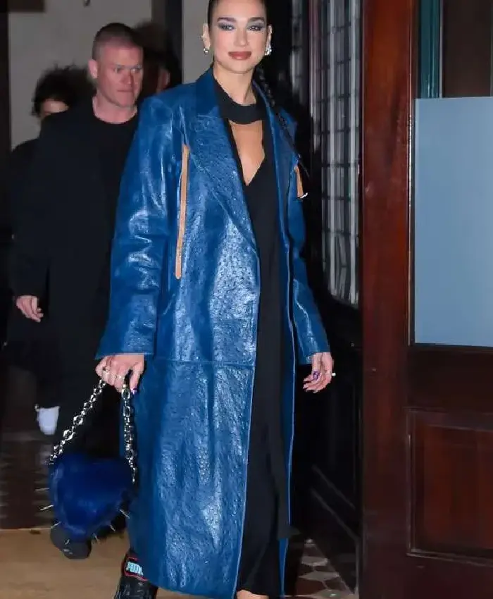 Dua Lipa 36th Annual Footwear News Achievement Awards Blue Leather Trench Coat For Women