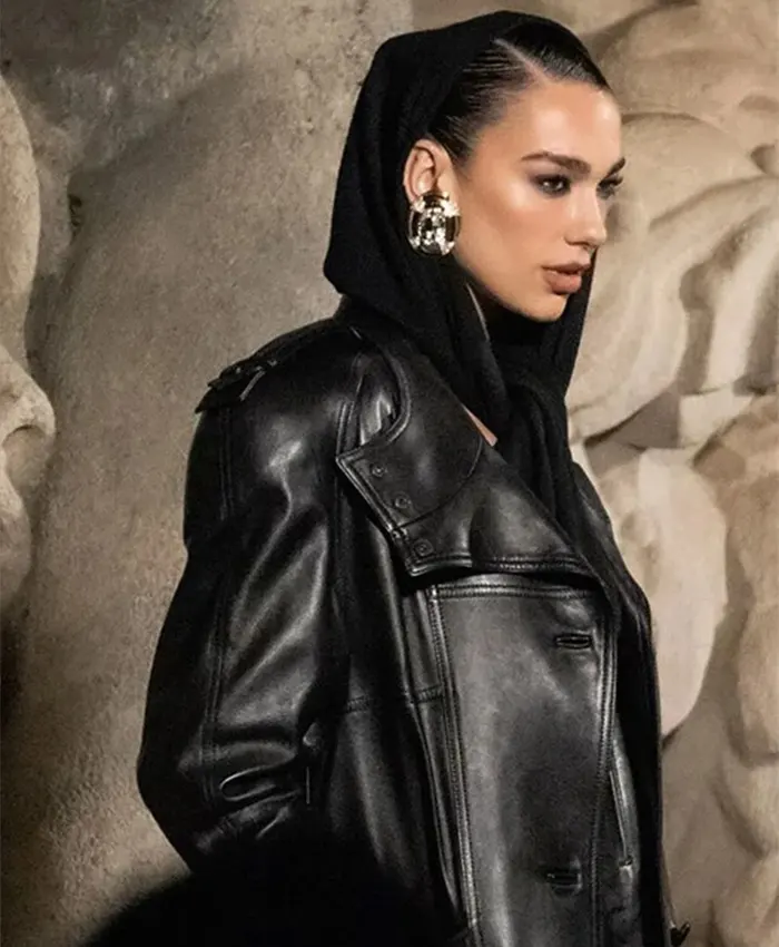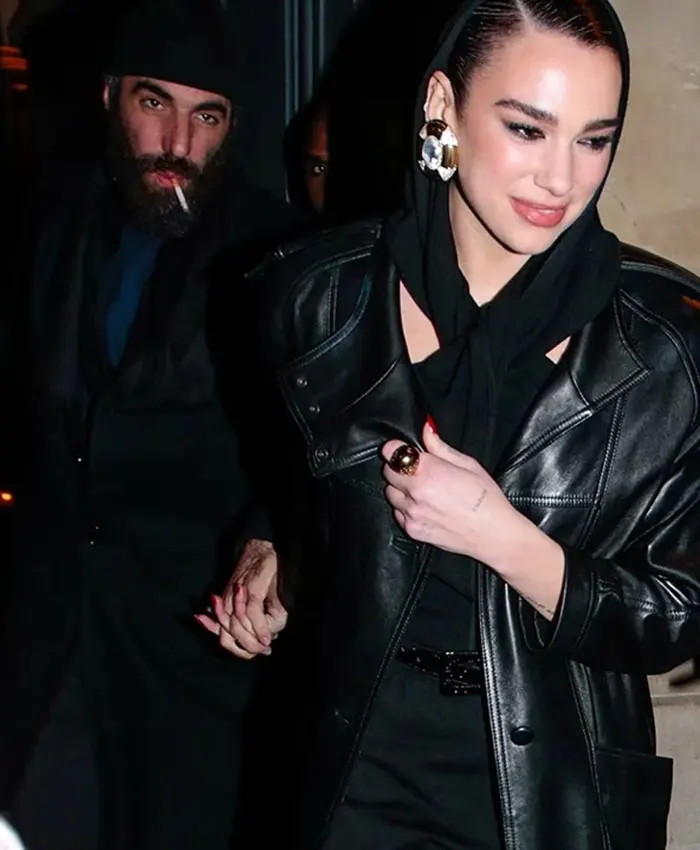 Dua Lipa Paris Fashion Week Black Long Leather Coat