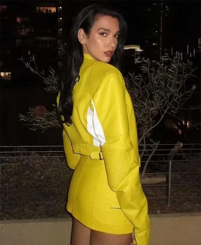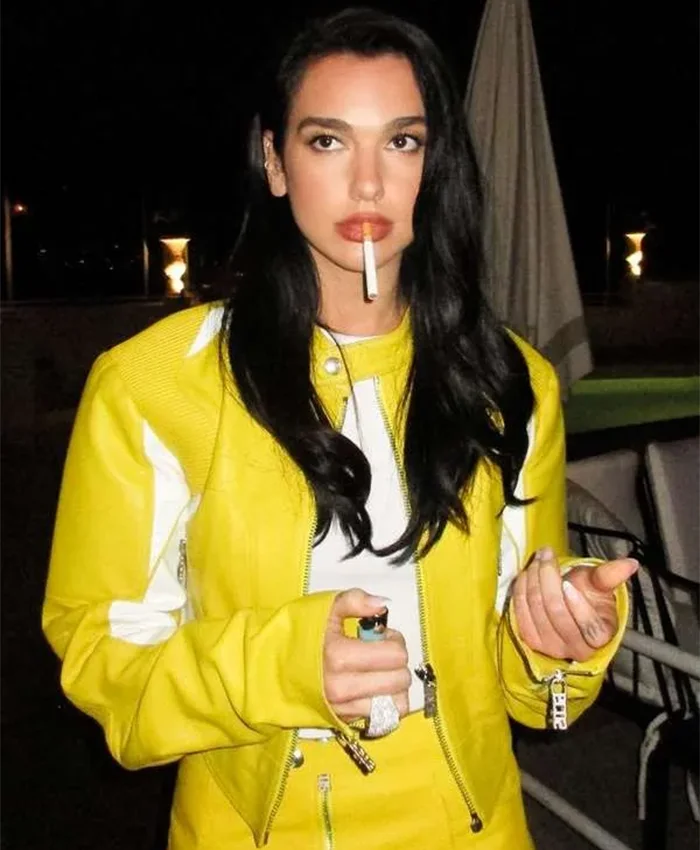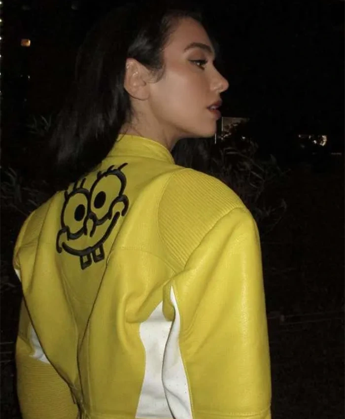 Dua Lipa Albanian Singer Spongebob Yellow Leather Jacket For Sale