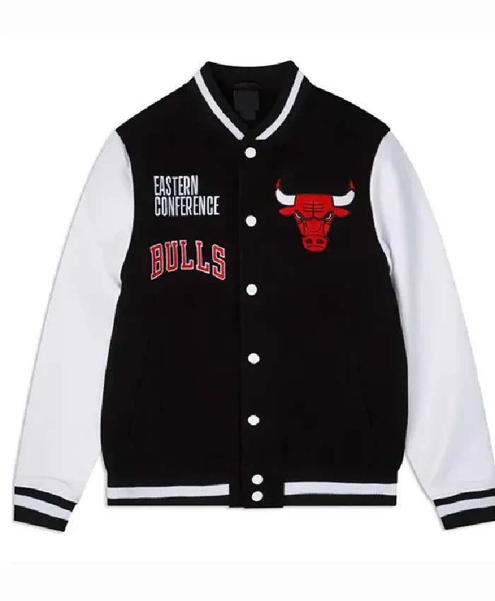 Eastern Chicago Bulls Conference Black and White Wool Varsity Jacket For Men and Women