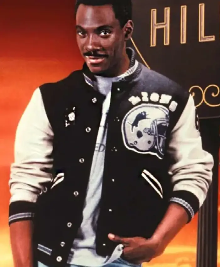Eddie Murphy Movie Beverly Hills Cop III 1994 Axel Foley Black Varsity Jacket For Sale