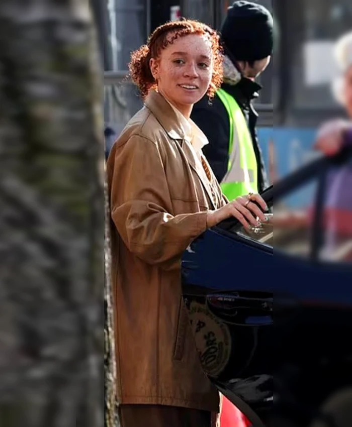 Erin Kellyman Movie Eleanor the Great 2025 Nina Brown Leather Coat
