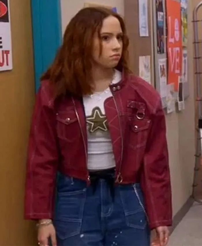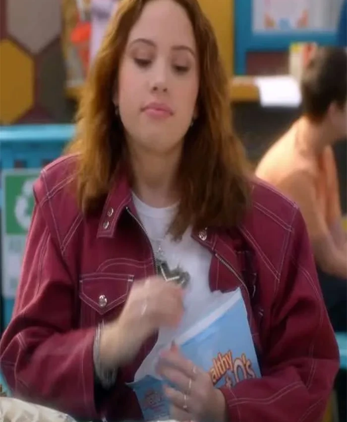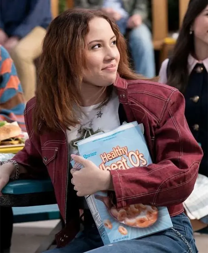 Carmen B. Sanchez TV Series Electric Bloom 2025 Jade Castillo Burgandy Denim Jacket