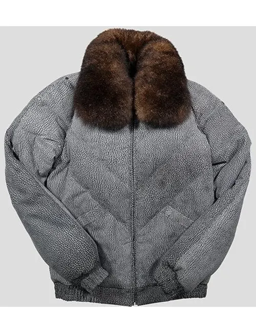 Elephant Print Removeable Fur Collar V Bomber Jacket For Unisex On Sale