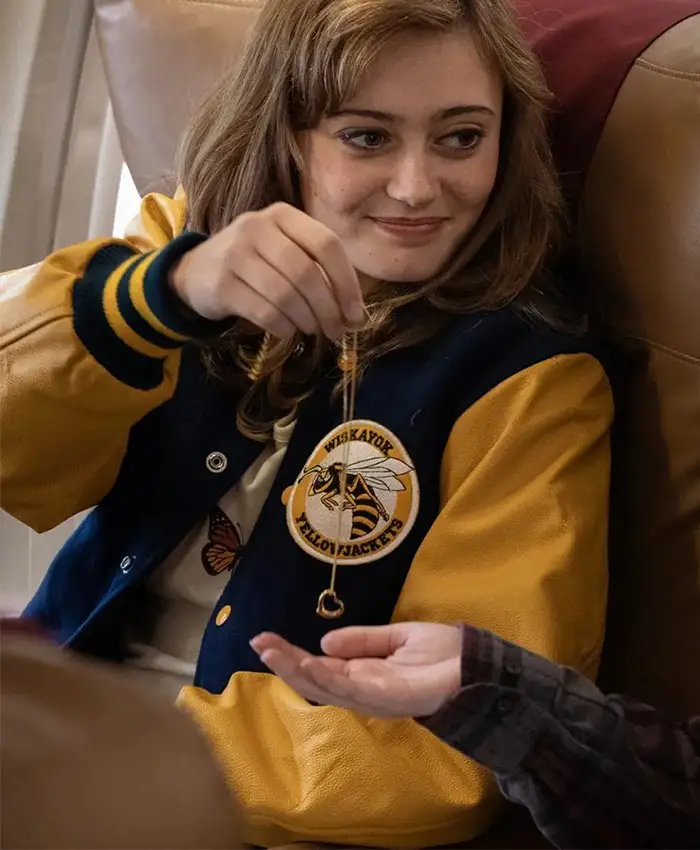 When talking about iconic psychological thriller dramas full of mystery and suspense, Yellowjackets stands out. This American survival series has captivated audiences since its debut. It follows a gifted high school girls’ soccer team whose lives change after their plane crashes deep in the Canadian wilderness. The British actress Ella Purnell stars as the team captain, showcasing her powerful acting and memorable fashion choices throughout the series. One of her standout looks is now available, the Ella Purnell Yellowjackets Wool Varsity Jacket.