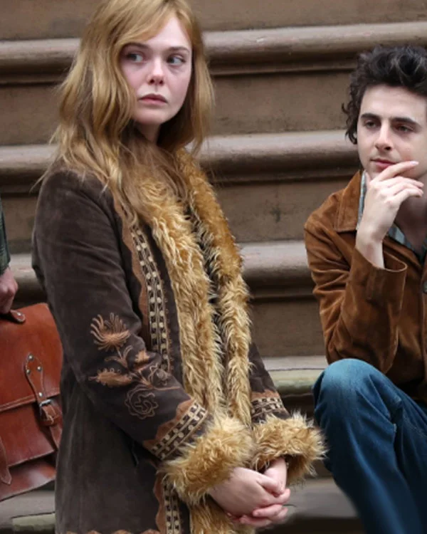 Sylvie Russo Movie A Complete Unknown Elle Fanning Brown Shearling Suede Leather Jacket