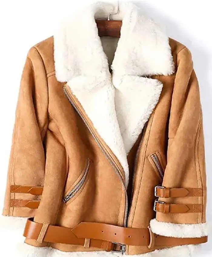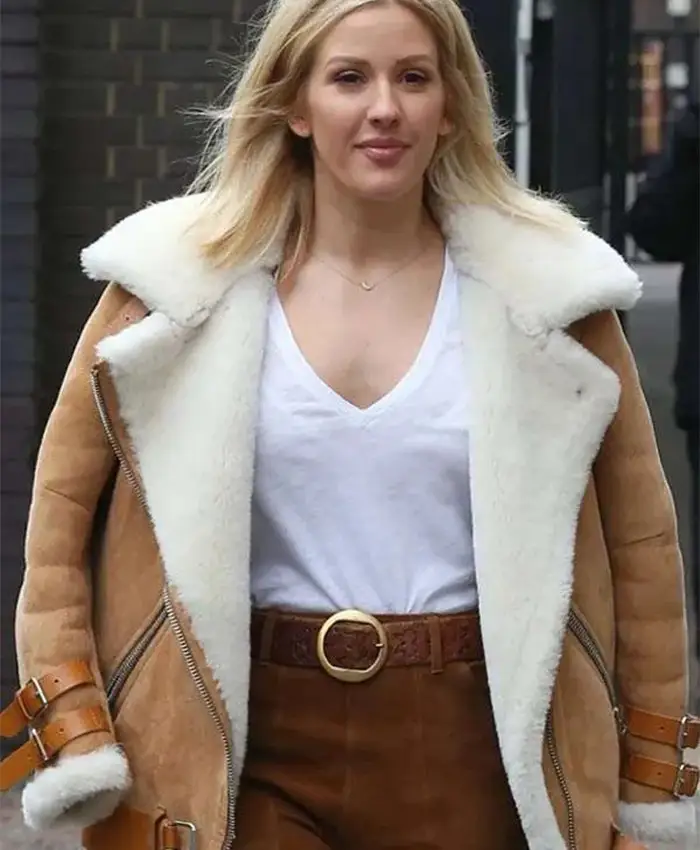 Stay Cozy and Chic in the Ellie Goulding B3 Brown Shearling Leather Jacket