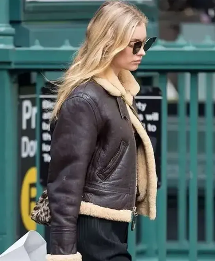 It’s crucial to wear clothes that reflect your style in a world where trends are constantly shifting. Wearing a fashionable jacket like this one, which draws inspiration from the characters we see in television shows and films, is a great way to show off your unique style. In addition to being a piece of apparel, the Elsa Hosk Brown B3 Shearling Leather Jacket is an investment in timeless style.