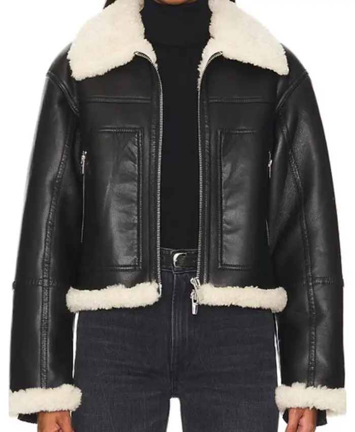 Carra Patterson TV-Series Elsbeth 2025 Kaya Blanke Black Sherpa Leather Jacket