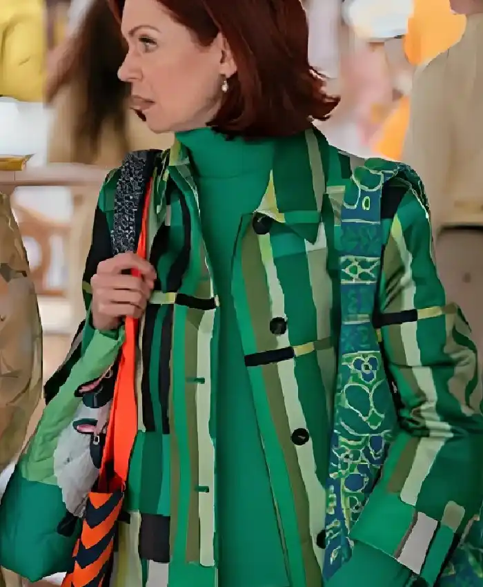 Carrie Preston TV Series Elsbeth 2026 Elsbeth Tascioni Green Printed Long Coat For Women