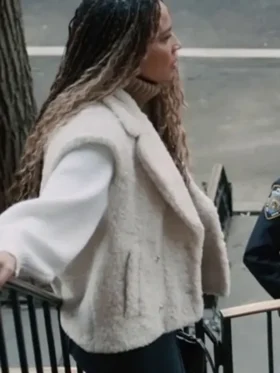 Elsbeth Tascioni Carrie Preston TV Series Elsbeth 2024 Belted Longline Eyelash Blue Tweed Coat