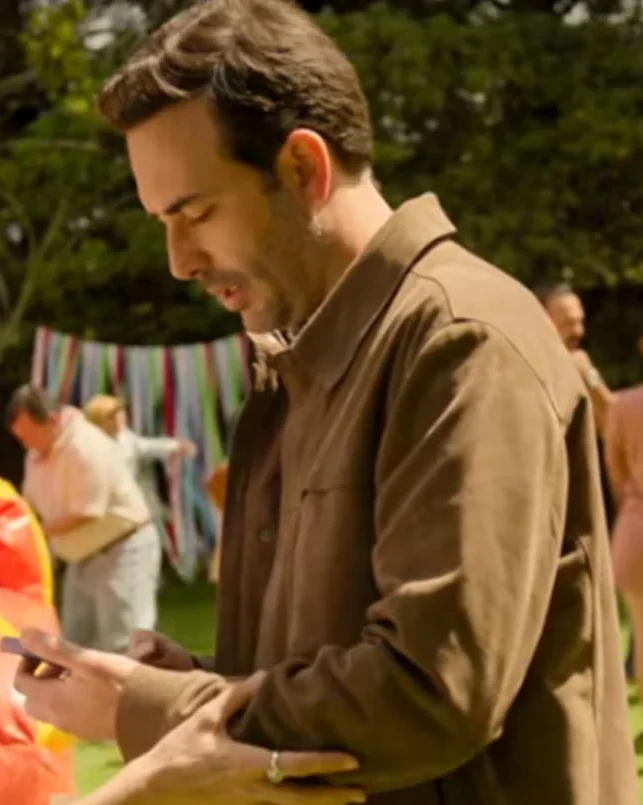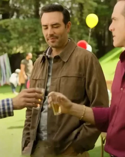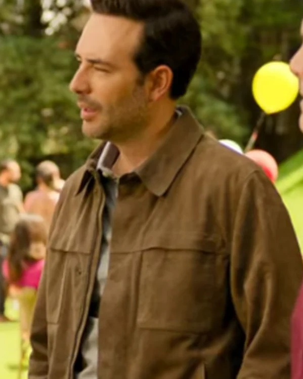 Sebastián Martínez Movie The Accident 2024 Emiliano Lobo Brown Suede Leather Jacket