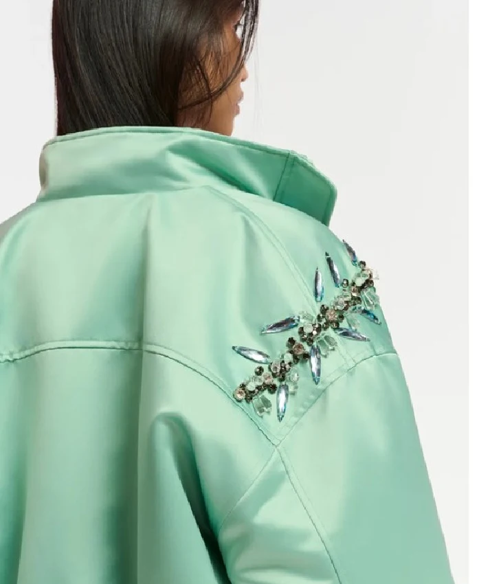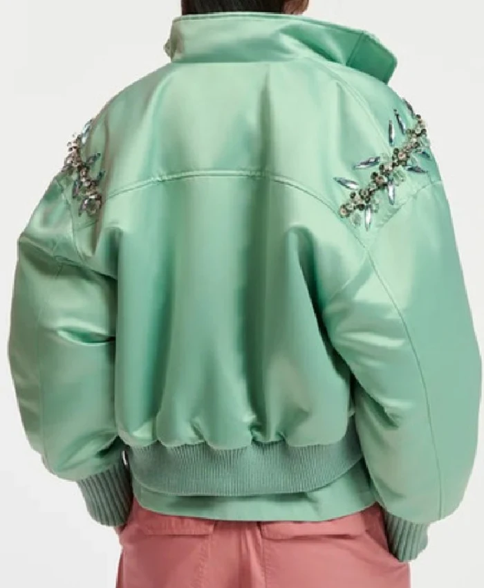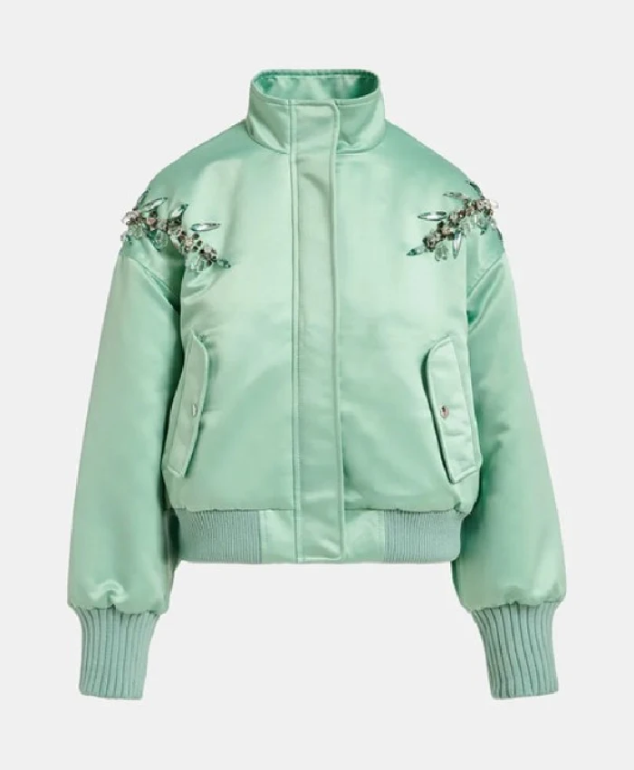 Ashley Park Emily In Paris S04 Green Satin Jacket For Women