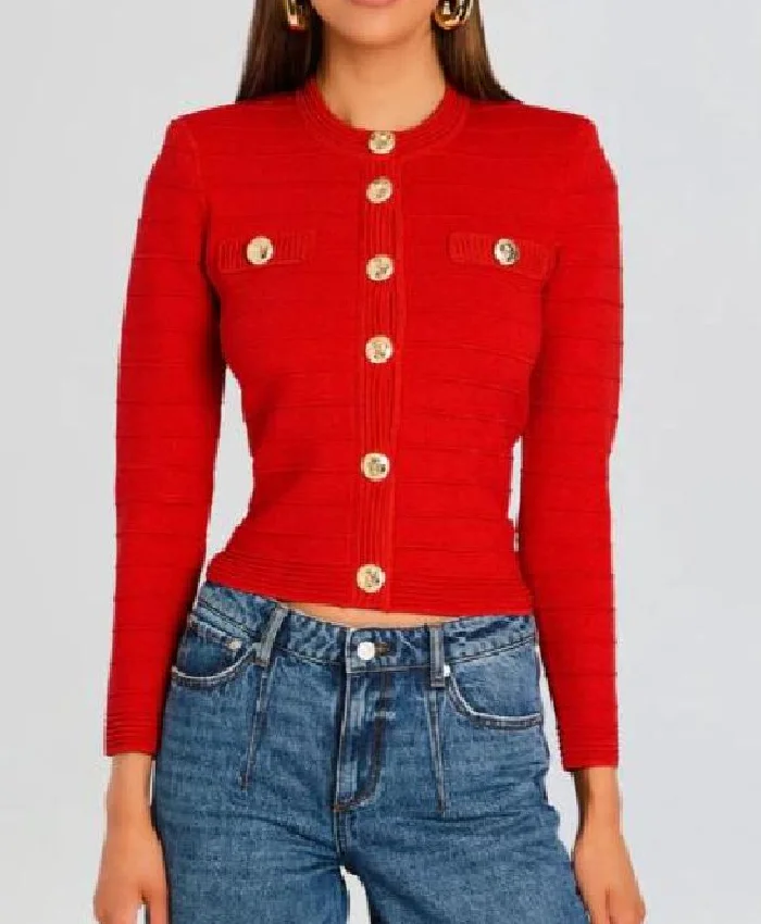 Be the first to review “Emily In Paris Ashley Park Red Knitted Jacket” Cancel reply