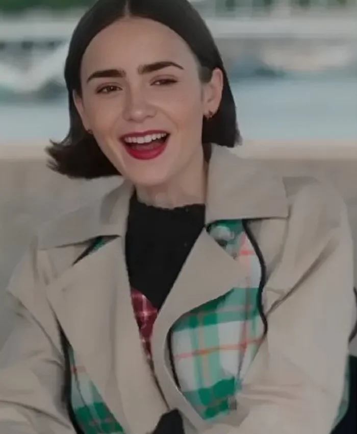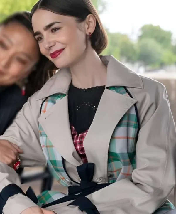 Lily Collins Emily In Paris S05 Plaid Trench Coat For Women