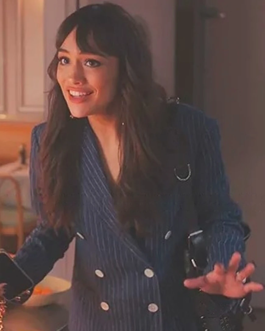 Grab the Lily Collins Navy Pinstriped Blazer inspired by Emily in Paris S04 for a fantastic price before it sells out in our Emily in Paris Outfit section.
